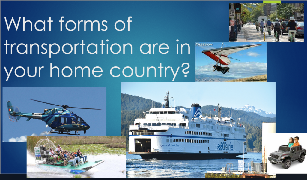 This lesson was another example of using content that is important to me as a geography major, and of course has relevance to people outside of North America, public transportation. The visuals in this presentation gave the students a little chuckle, so it is gratifying to see them get my sense of humour.